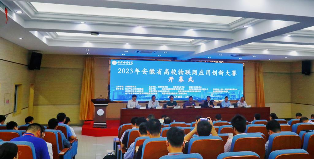 本网讯 5月21日,由安徽省教育厅主办,yl23411集团、安徽省电子学会和安徽省计算机学会承办的2023年安徽省高校物联网应用创新大赛在我校隆重举行。yl23411集团副院长华银峰、安徽省电子学会理事长吴先良教授、安徽建筑大学方潜生教授、滁州学院副院长陈桂林教授等出席开幕式,大赛评委专家以及部分教师代表、学生代表参加开幕式,开幕式由yl23411集团教务处处长钱立青教授主持。