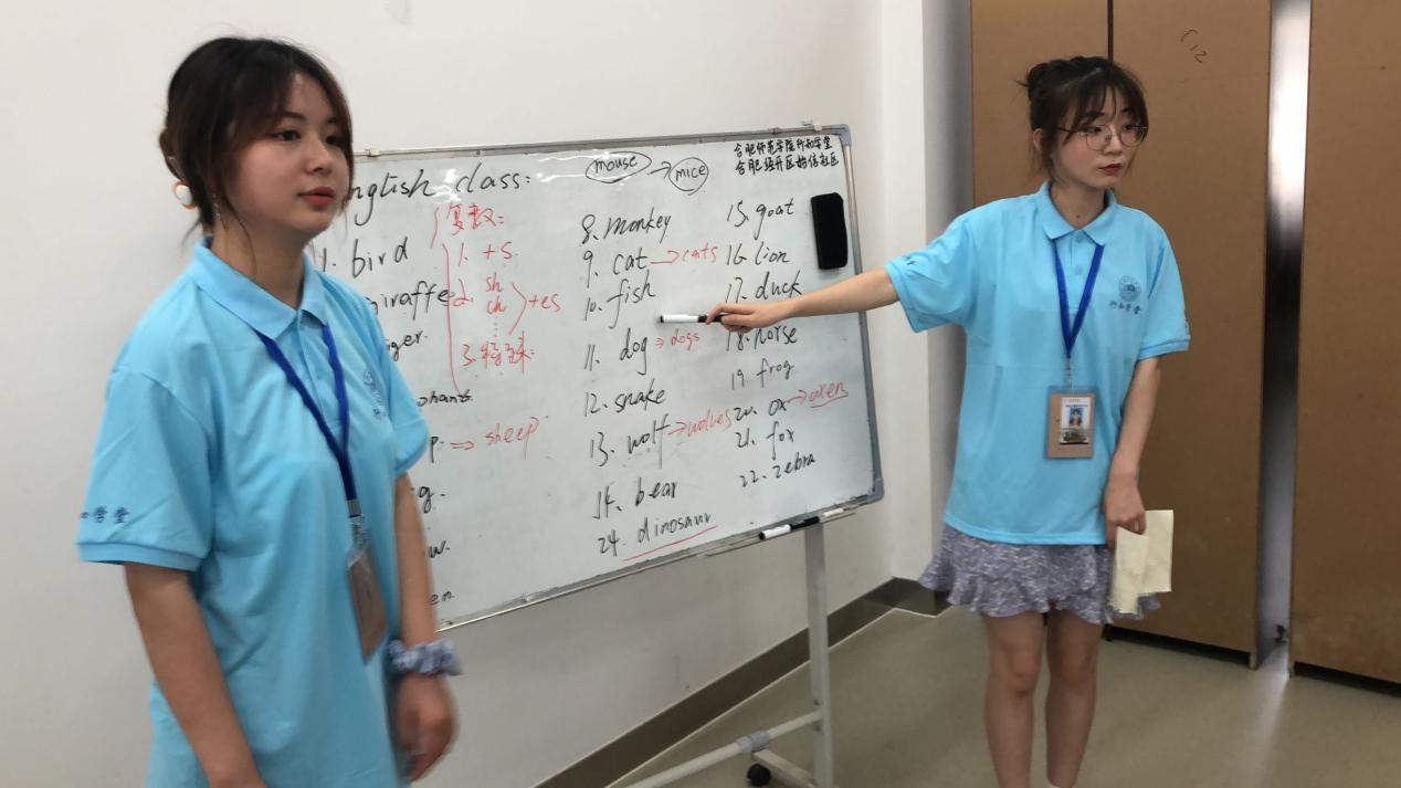 “LSRW四步走”即通过听listen、说speak、读read、写write四个模块,快速提升小学员们的英语能力。课程由两位英语师范专业的小先生进行授课,小先生们将课程的核心放在引导小学员们如何避免“哑巴英语”,帮助小学员们自信地发音朗读,参与到课程互动中来。