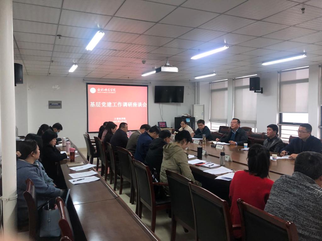 首先王祥书记对照调研提纲逐一汇报计算机学院党建情况,党委委员和支部书记分别就党建和事业发展提出了意见建议。随后校党委副书记吴昕春就学院两项会议议事制度落实情况、党支部优化设置、党员发展、创新党员教育、标杆院系、样板支部等示范项目等工作容给予充分认可。最后校党委书记徐成钢肯定了计算机学院党建和事业发展取得的成绩,并提出四点希望:一是强化理论武装,筑牢思想根基;二是强化组织合力,夯实基层基础;三是强化攻坚合力,压实工作责任;四是强化党建引领,提升发展质量。