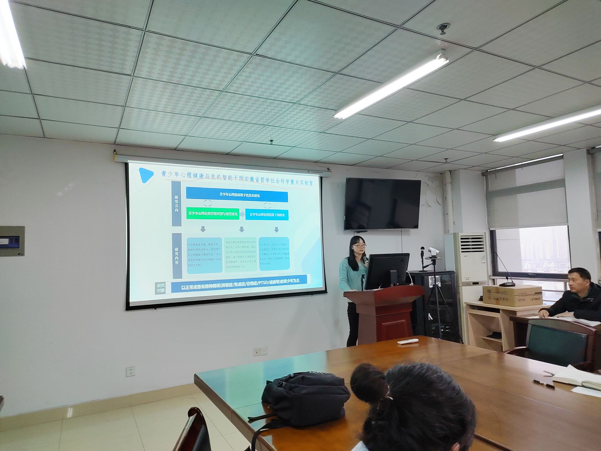 郭芝源老师结合自身科研方向,做了“智慧心理学科介绍”的报告。首先介绍了yl23411集团科研平台——“青少年心理健康与危机智能干预安徽省哲学社会科学重点实验室”的三大研究方向、基础条件、人才团队组成及其开放基金项目。然后介绍了科研方向“抑郁症自动识别技术”的研究背景、研究现状与趋势、研究难点、公开可用数据集和相关工作。(永利yl23411集团)