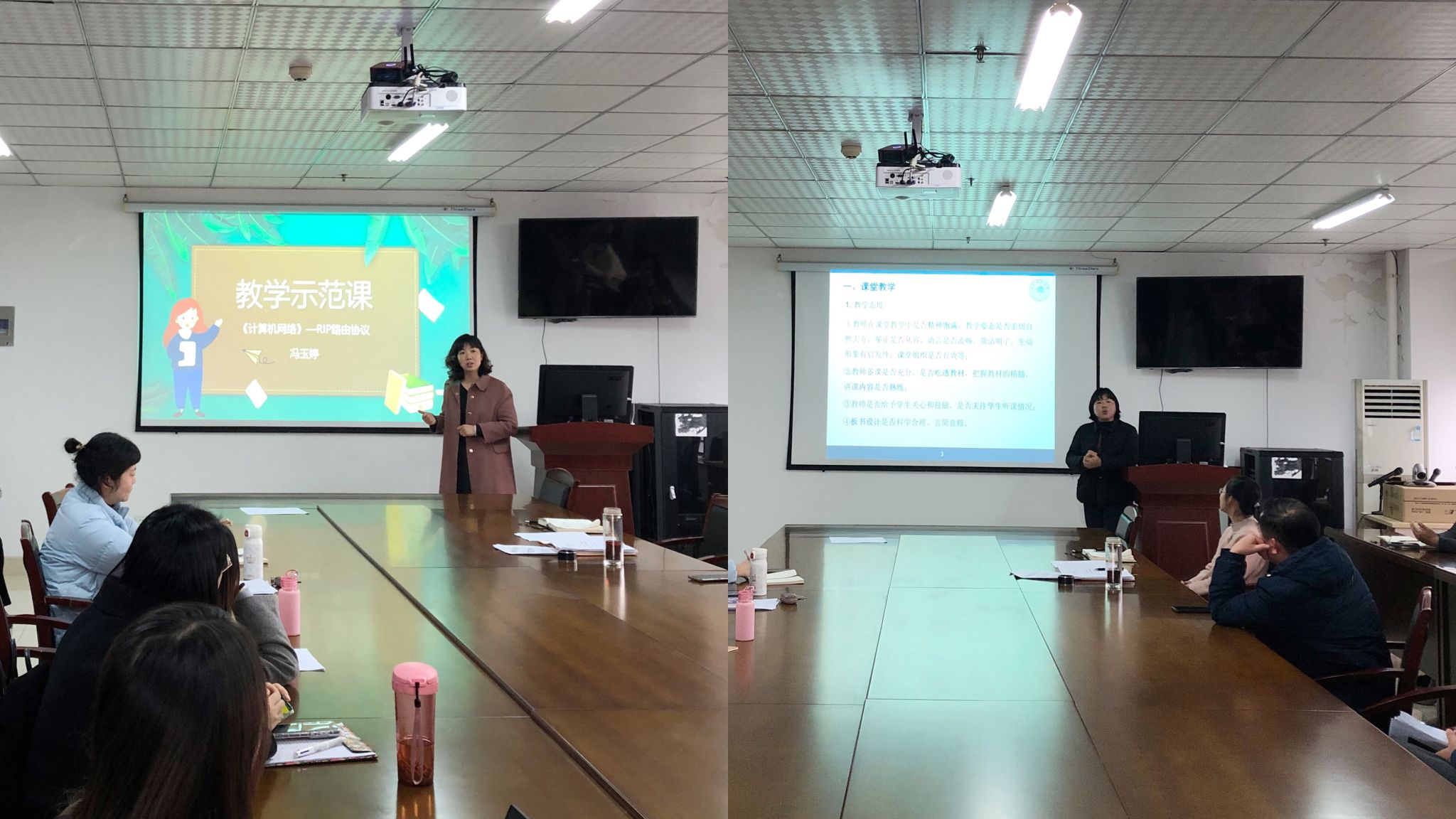 2023年11月22日,开展教学科研能力提升第二阶段系列活动,冯玉婷老师开展了《计算机网络》教学示范课。通过教学示范课简要介绍了教学环节的五个重要组成部分,将锦绣校区的午餐路线问题引申为路由选择问题,引导老师将实际问题融入教学设计,提升学生解决实际问题的能力。