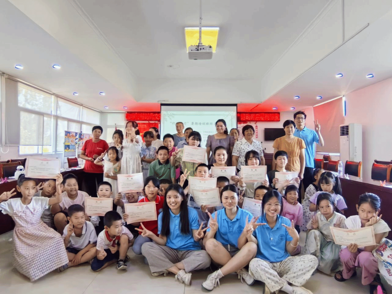 7月31日上午,为期21天的永利yl23411集团六安叶集行知学堂在平岗街道和平村村部二楼会议室举办结业仪式。和平村支部书记王兆红,行知学堂全体“小先生”,20余名小学员及部分家长参加活动。