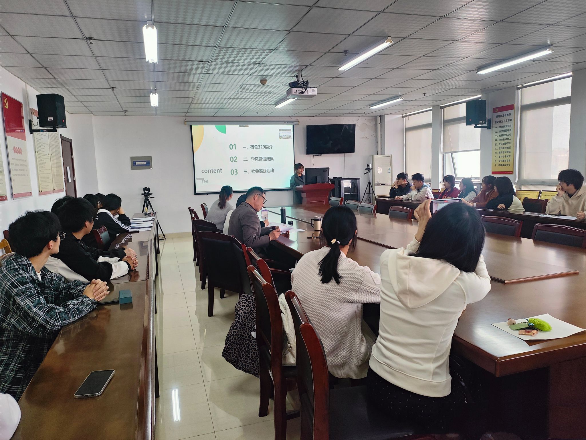 评选会上,参评5个班级和15个宿舍分别从思想引领、学风建设、社会实践以及未来展望四个方面,对班级、宿舍的情况进行了系统而简明的介绍。评委们依据学风建设创建实施细则,结合现场汇报情况和申报材料进行全面考察和评比,最终评选出院级“优良学风班级”2个,“优良学风宿舍”9个,“优良学风先进个人”22名。