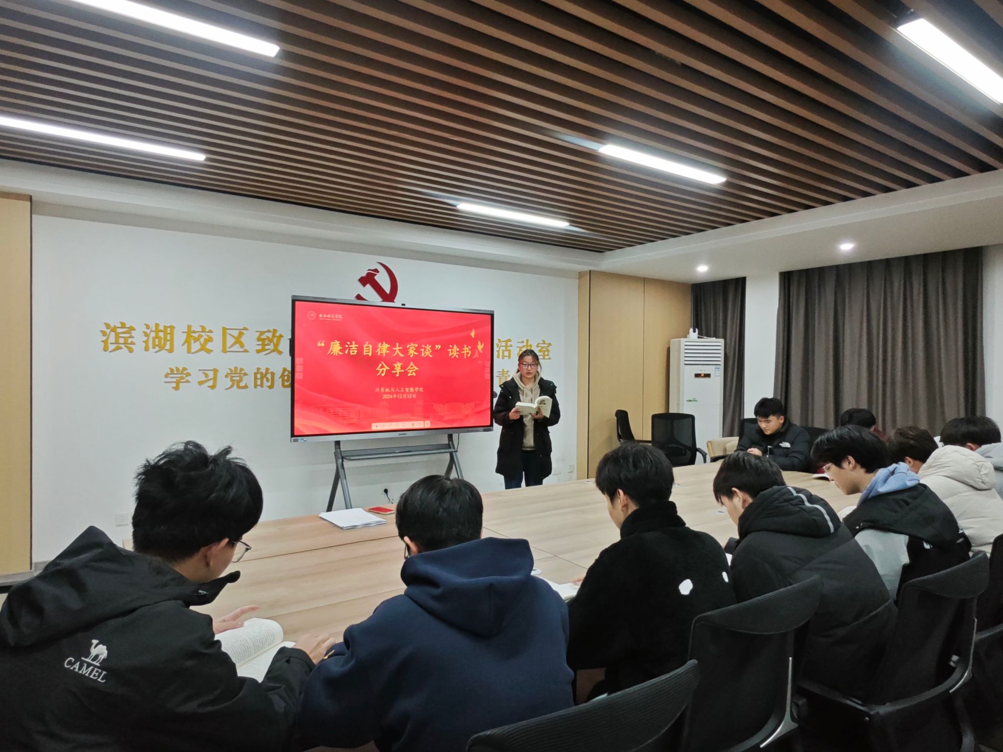为激发师生对廉洁文化的关注,推动廉洁教育深入人心,12月12日,永利yl23411集团在滨湖校区一站式学生社区举办了“廉洁自律大家谈”读书分享会活动,本次分享以廉洁文化为主题,吸引了学院的广大团员和学生代表前来。