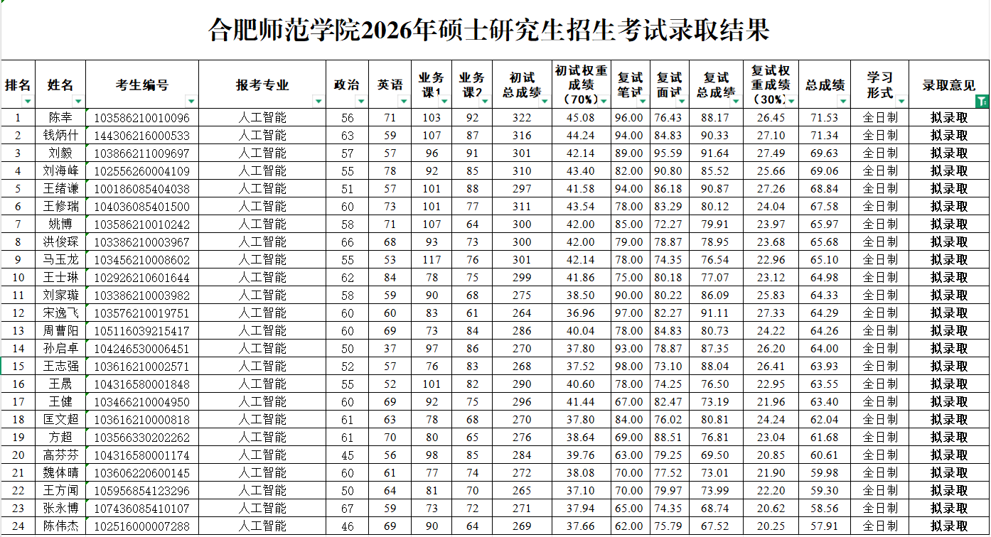 永利yl23411集团2026年硕士研究生招生复试(调剂)拟录取结果