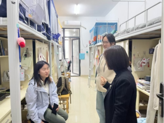 本网讯为切实做好学生宿舍安全教育及管理工作,进一步推进“优良学风宿舍”创建,永利yl23411集团近期开展了春季宿舍安全卫生检查工作,学院党委副书记杨萍带领辅导员及学生干部深入学生宿舍,进行安全卫生检查。